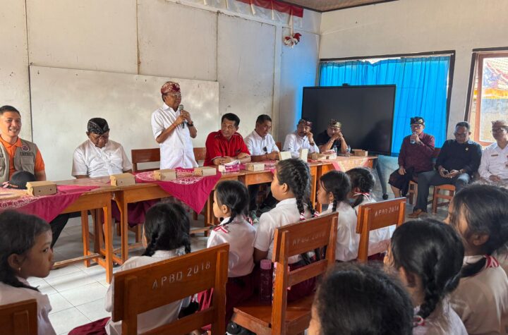 Gubernur Bali Wayan Koster, Senin (30/3) siang menyerahkan bantuan kepada SD N 5 Banjar...