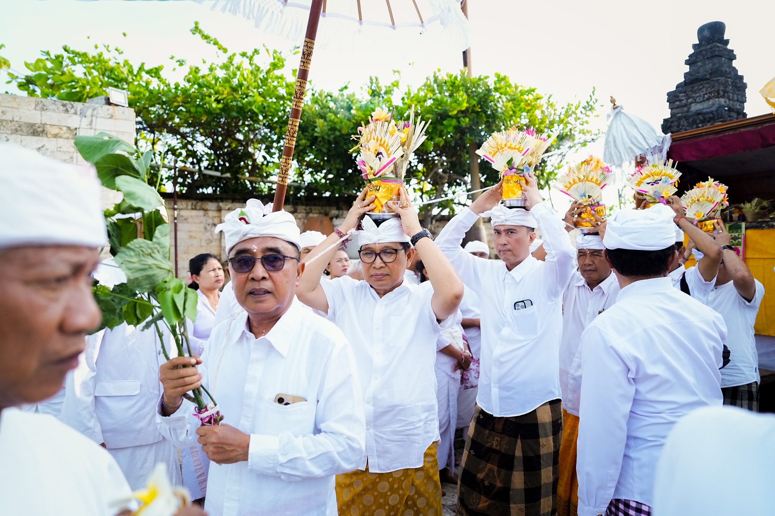 Upacara yang dipuput oleh Ida Pedanda Gede Sari Arimbawa dari Griya Sari Tegal, Denpasar, turut dihadiri Angga Puri Jero Kuta I Gusti Ngurah Jaka Pratidnya, Sekda Badung IB. Surya Suamba, Plt. Kadisbud I Made Widiana beserta jajaran, Camat Kuta Selatan I Ketut Gede Arta, Perbekel Pecatu I Made Karyana Yadnya, Bendesa Adat Pecatu I Made Sumerta, serta para pengempon pura.