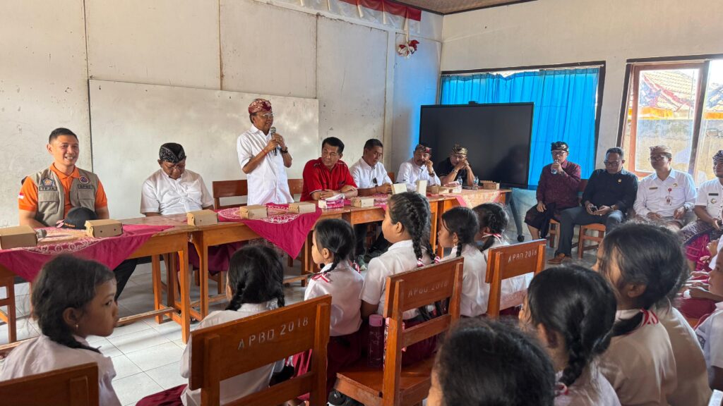 Gubernur Bali Wayan Koster, Senin (30/3) siang menyerahkan bantuan kepada SD N 5 Banjar yang terdampak banjir bandang yang terjadi pada 6 Maret 2026 lalu. Didampingi Kalaksa BPBD Provinsi Bali I Gede Agung Teja Bhusana Yadnya, Gubernur Koster menyerahkan langsung bantuan yang bersumber dari gotong royong pegawai Pemprov Bali sebesar Rp. 129 juta.