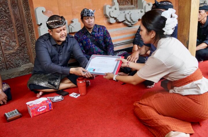 Wakil Bupati Badung, Bagus Alit Sucipta menyerahkan penghargaan tertib administrasi pengurusan akte kematian kepada...