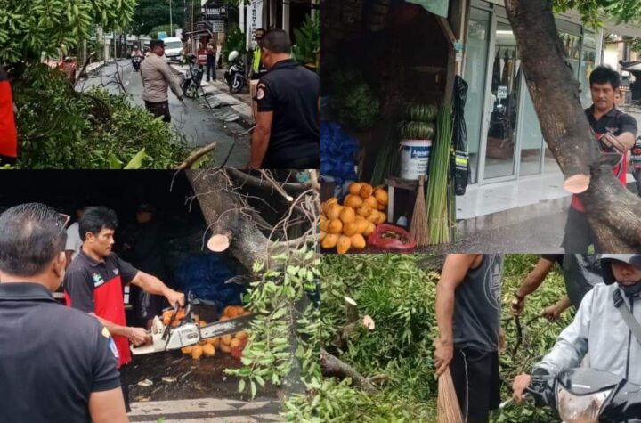Akibat Hujan Beserta Angun Kencang, Pohon Tumbang Di Jl. Majapahit Kuta Tutupi Badan Jalan....