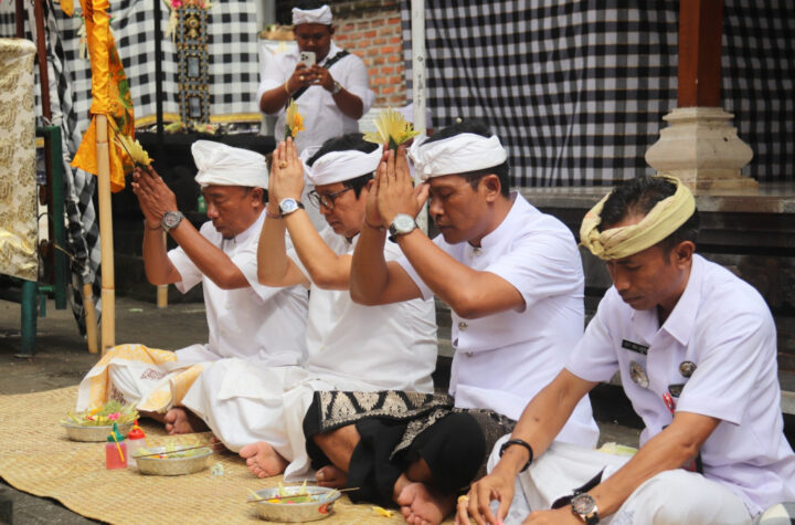 Bupati Badung diwakili Sekda Badung I Wayan Adi Arnawa melakukan upasaksi serangkaian Piodalan di...