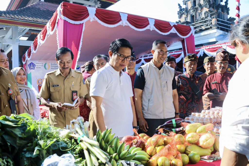 Sekretaris Daerah Kabupaten Badung Adi Arnawa menghadiri pembukaan Gerakan Pangan Murah (GPM) Tingkat Nasional di Kabupaten sekaligus menghadiri undangan Launching Gerakan Pangan Murah (GPM) serentak Nasional melalui zoom bertempat di Balai Banjar Kekeran Desa Angantaka Abiansemal, Badung, Senin (26/6). Kegiatan pelaksanaan GPM serentak melalui zoom diikuti 341 titik di 300 Kabupaten/Kota se-Indonesia yang bertujuan untuk Stabilisasi pasokan dan harga pangan, menjaga daya beli masyarakat serta pengendalian inflasi pangan menjelang Hari Besar Keagamaan Nasional (HBKN) Idul Adha 2023 yang didanai dari anggaran Badan Pangan Nasional sebesar Rp 20 juta untuk paket Provinsi dan Rp 15 juta untuk paket Kabupaten/Kota. Gerakan ini merupakan bukti keberpihakan pemerintah terhadap masyarakat yang tujuannya mewujudkan petani sejahtera, pedagang untung, konsumen tersenyum karena pangan kuat indonesia berdaulat.