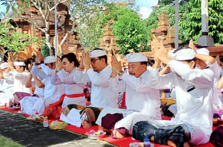 Pemkot Denpasar menggelar persembahyangan bersama dalam rangka memperingati Pitenget atau peringatan Tumpek Landep di...