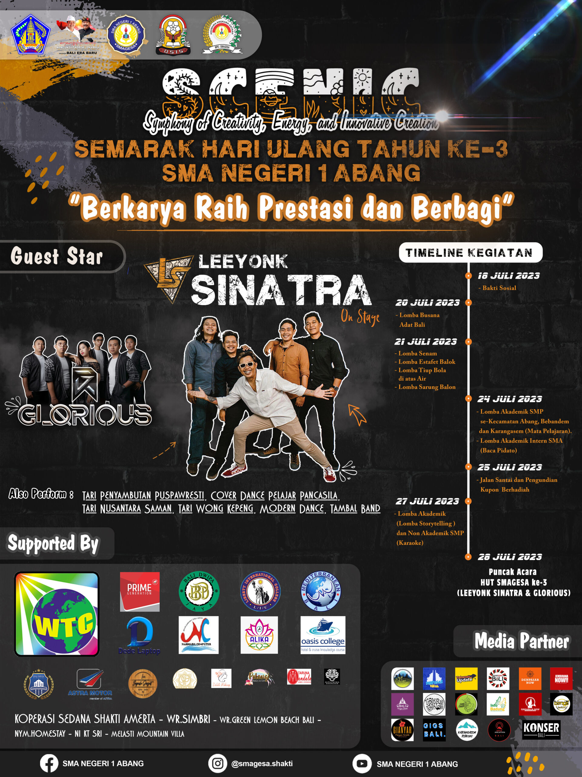 Merupakan konsep acara HUT ke-3 SMA Negeri 1 Abang yang bertemakan BERKARYA RAIH PRESTASI DAN BERBAGI. Dimeriahkan oleh berbagai macam acara yaitu Bakti Sosial, Lomba Akademik dan Non Akademik, Jalan Santai dan Pengundian Kupon Berhadiah, serta Penampilan dari band hits di antaranya: