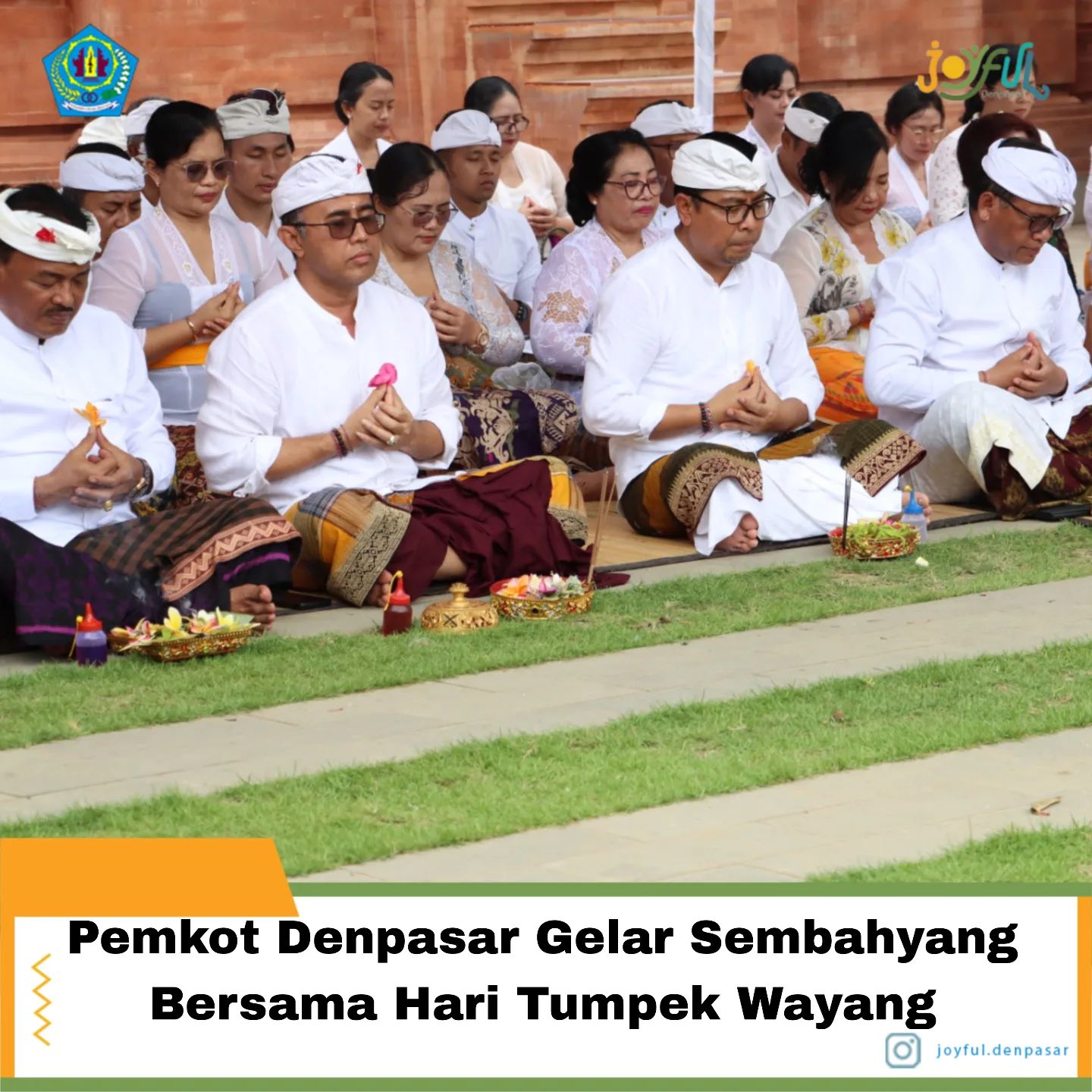 Pemkot Denpasar menggelar persembahyangan bersama serangkaian Hari Tumpek Wayang, Sabtu (25/11) di Pura Agung Jagatnatha Denpasar. Tumpek Wayang juga merupakan cerminan dimana dunia yang diliputi dengan kegelapan, manusia oleh kebodohan, keangkuhan, keangkara murkaan. Tumpek Wayang kata Jaya Negara juga bermakna sebagai “Hari Kesenian”. Karenanya, secara ritual diupacarai (kelahiran) berbagai jenis kesenian seperti wayang, barong, rangda, topeng, dan segala jenis gamelan.