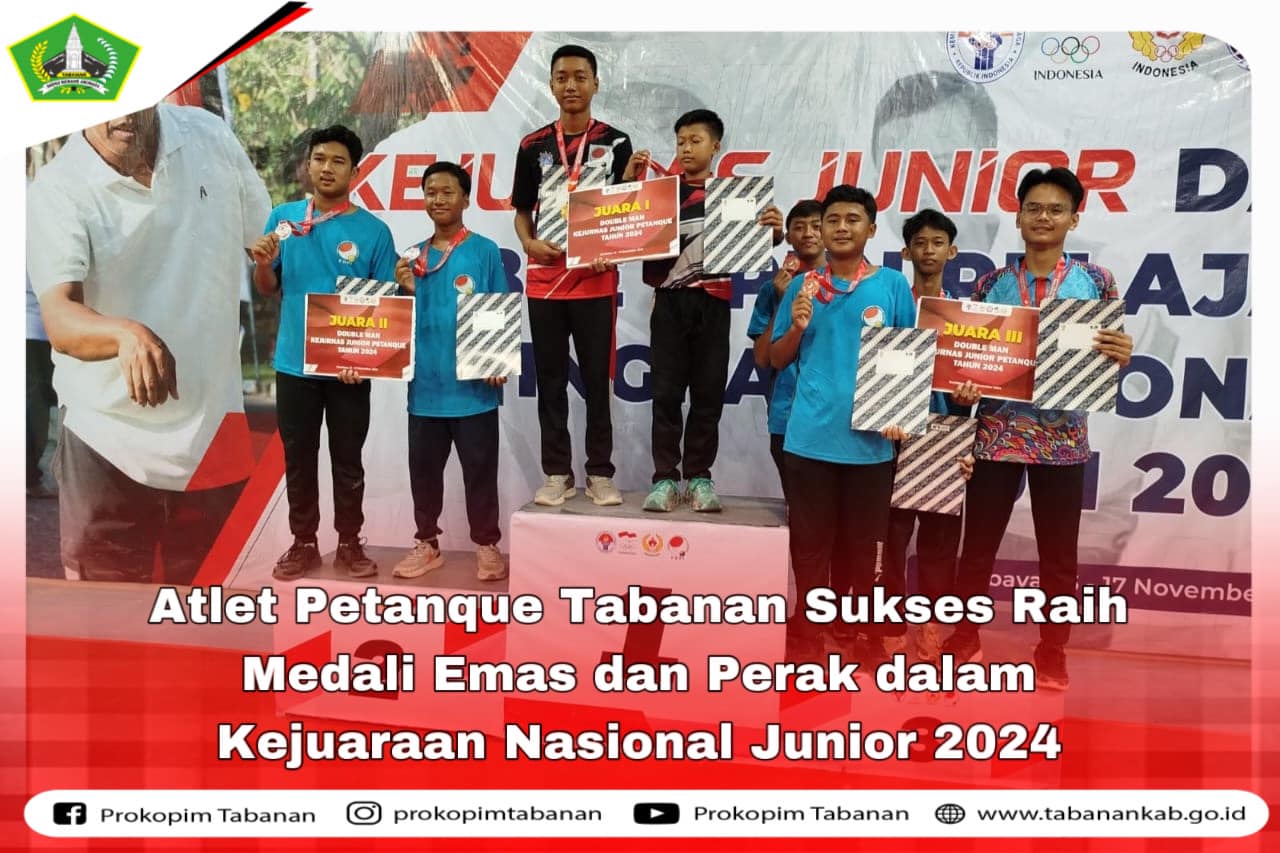 Atlet-atlet muda dari Kabupaten Tabanan, Bali, kembali mengukir prestasi membanggakan dalam Kejuaraan Nasional Junior Petanque 2024 yang digelar di Sport Center Universitas Negeri Surabaya (UNESA), Minggu (17/11). Dalam ajang yang diikuti oleh atlet-atlet terbaik se-Indonesia ini, Tabanan berhasil meraih medali emas dan perak, membuktikan kualitas dan potensi besar yang dimiliki oleh para atlet daerah ini.