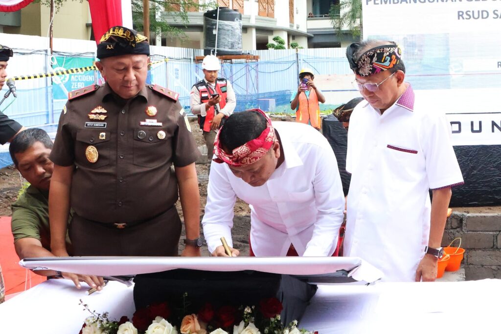 Pada kesempatan tersebut, Gubernur Bali Wayan Koster, Bupati Gianyar Made Mahayastra dan Kepala Kejaksaaan Tinggi Negeri Bali Ketut Sumedana berkesempatan menandatangani prasasti serta melakukan peletakan batu pertama Gedung PJT RSUD Sanjiwani. Hadir pula dalam kesempatan tersebut Sekda Gianyar I Dewa Gede Alit Mudiarta, Dandim 1616/Gianyar Letkol Cpn. I Gede Winarsa, Ketua KPN Gianyar Putu Endru Sonata, serta Kapolres Gianyar AKBP Umar.