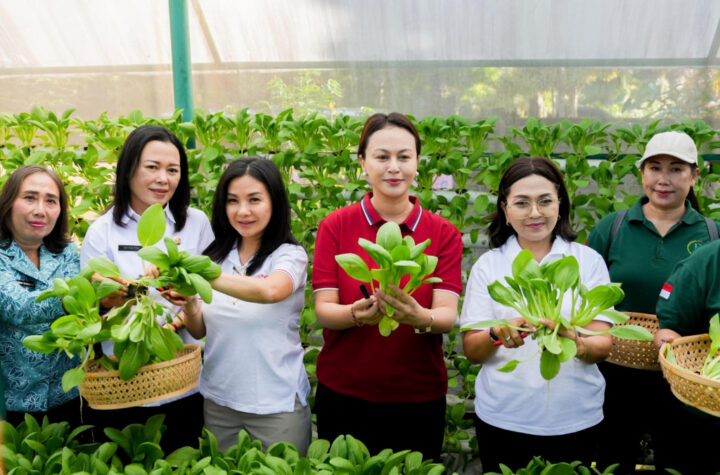 Ketua TP. PKK Badung Nyonya Rasniathi Adi Arnawa melakukan panen sayur Pokcoy sekaligus menyerahkan...