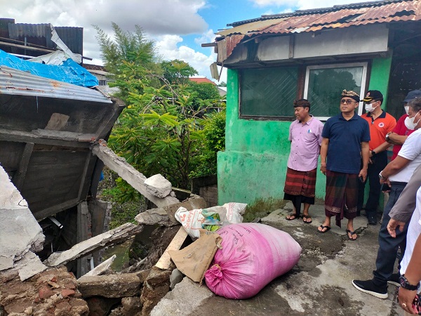 Walikota Denpasar, I Gusti Ngurah Jaya Negara bersama jajaran meninjau lokasi bangunan roboh akibat...